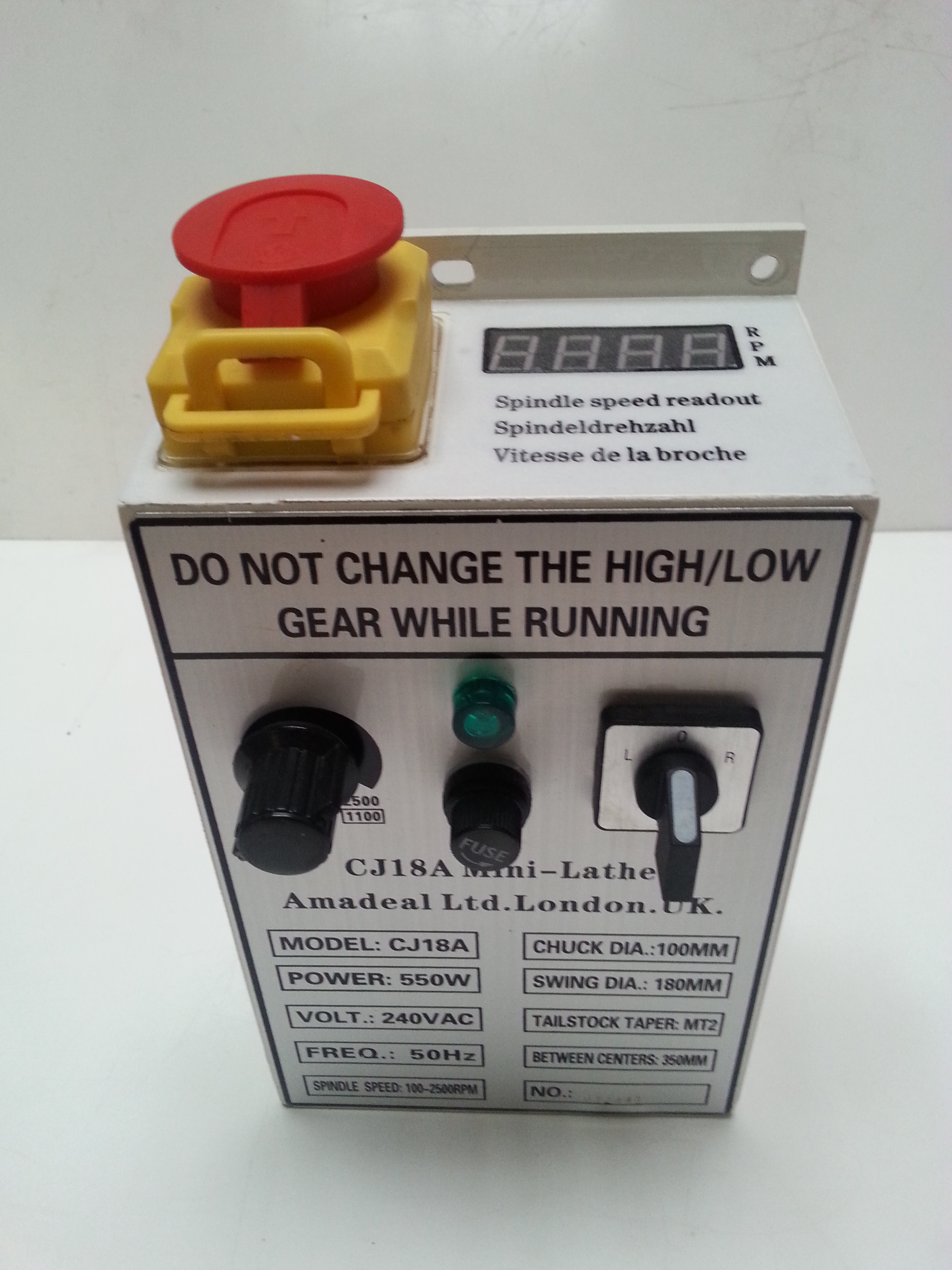 - For ,7x12 and 7x14 Mini Lathe - as Fitted to our CJ18A Brushed Lathes- 220-240V 50-60Hz This control box kit includes the plastic control box, the speed controller, the emergency stop switch, the F/O/R switch, the potentiometer, the fuse holder and fuse.