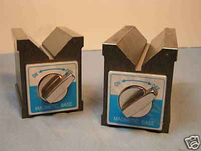 Magnetic Vee-Block - on the right of the image- 124x60x73mm - On/Off switch - 100Kg. pull - ground for use on all 4 longitudinal surfaces